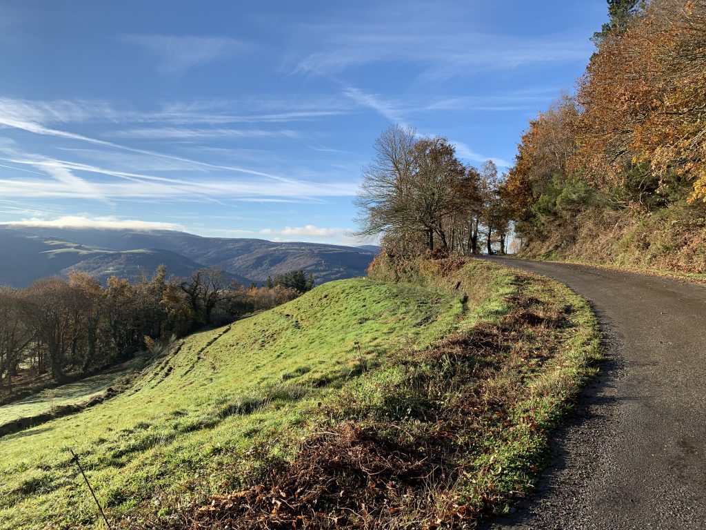 We pass through a few more fresh smelling farm villages and a lot of luscious green farm fields. In the valley not far from here we could see the mist we were soon to descend into.